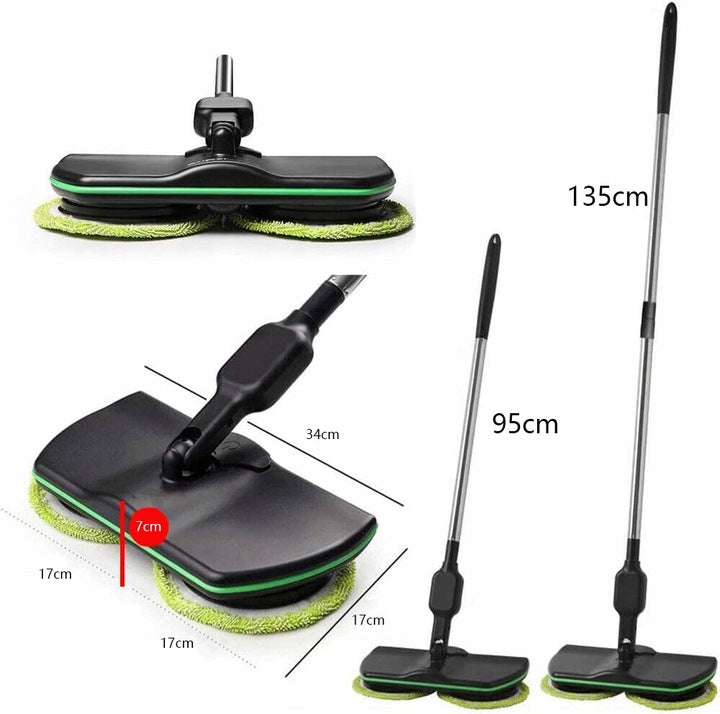 تتميز هذه الممسحة الكهربائية للأرضيات بمقبض قابل للسحب لتعديل الطول بمرونة، يمتد حتى 95 سم وطول قصير حتى 135 سم، لتلبية احتياجاتك المختلفة. لا انحناء، لا ألم في الظهر. يدور رأس الممسحة 180 درجة من اليسار إلى اليمين و90 درجة لسهولة التنظيف. يسهل الوصول إلى أسفل الأثاث وحوله