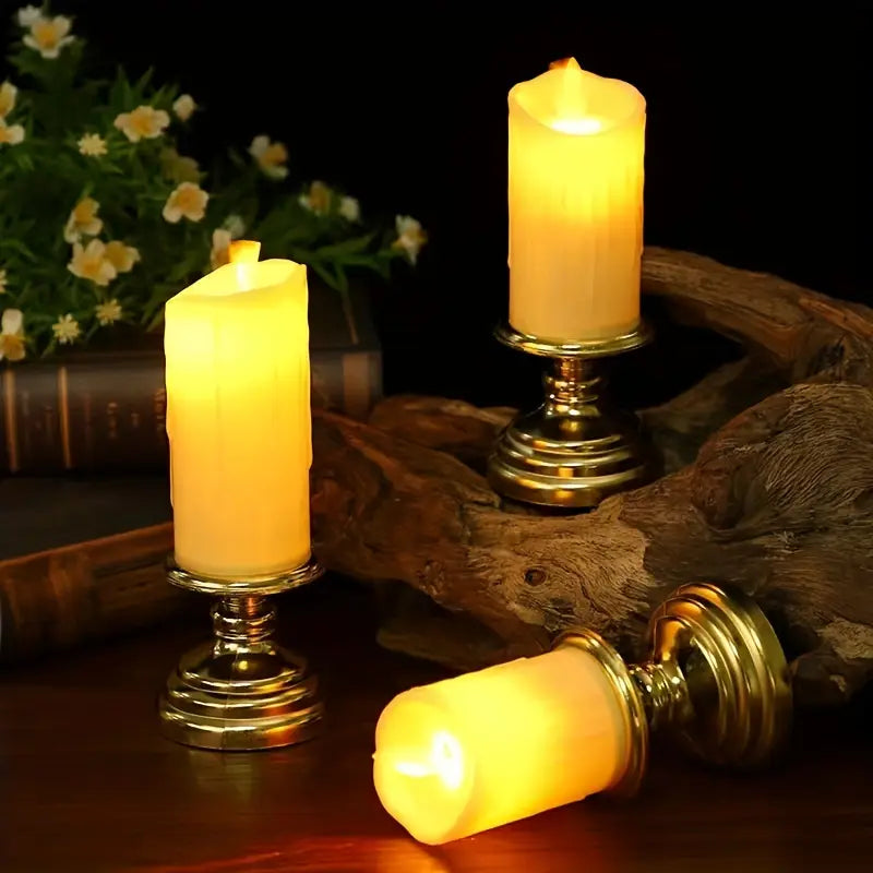 استمتع بسحر الشموع التقليدية مع إضاءة متطورة تحاكي لهبًا حقيقيًا نابض بالحياة. تضيف لمسة راقية ورومانسية لأجواء البيت، سواء في غرفة النوم، الصالون أو حتى أثناء عشاء خاص. مثالية للحفلات، الأعراس، واللحظات اللي بغيتها تكون مليئة بالهدوء والدفء بلا دخان ولا خطر الحريق
