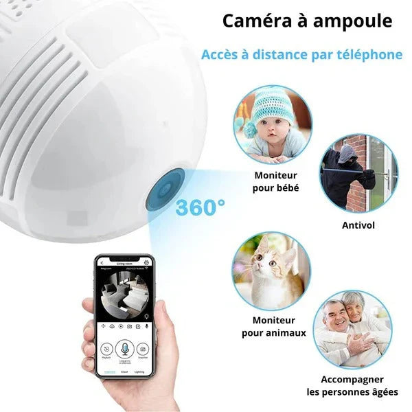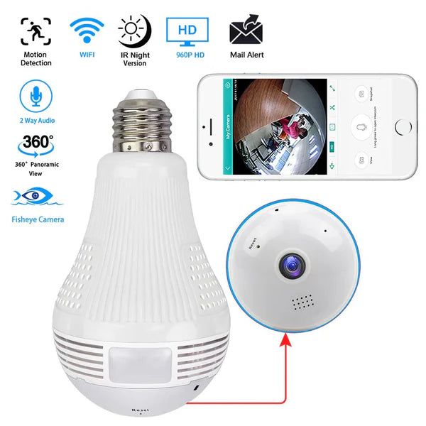 استمتع بمراقبة بزاوية 360 درجة من خلال كاميرا مدمجة داخل لمبة E27. يمكنك تدوير الرؤية مباشرة من هاتفك لتشاهد من جميع الزوايا – كل هذا من تطبيق مجاني بسيط الاستخدام