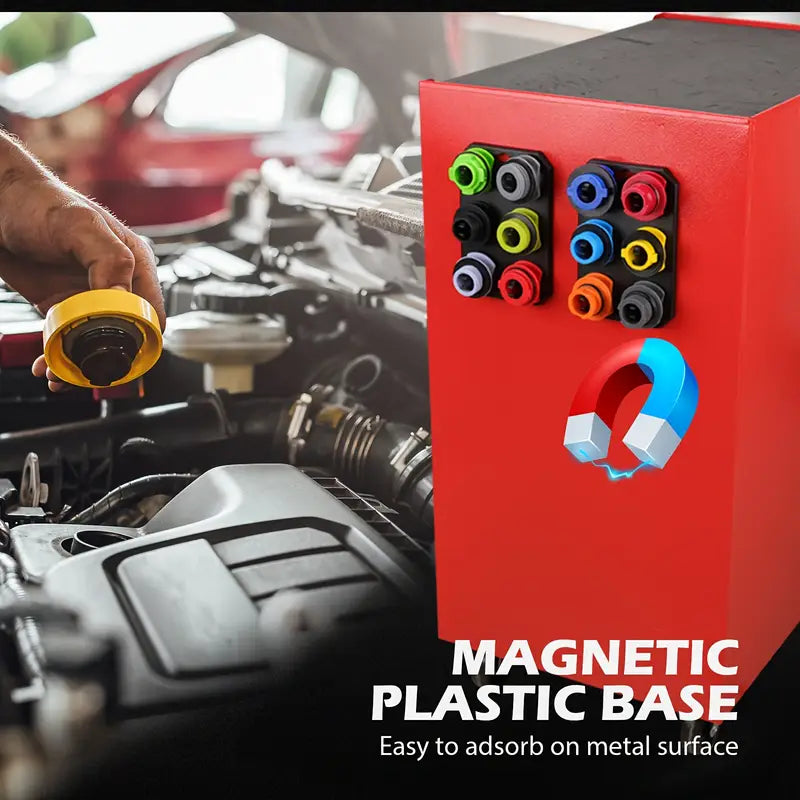 باش تبدل الزيت براحة وبدون ما تشد القمع بيدك، هاد الطقم فيه قاعدة مغناطيسية قوية كتخلي القمع يثبت مزيان فوق أي سطح معدني وكيعطيك حرية تستعمل يديك بلا توتر، وزيادة على هاد الميزة كيجي حتى مع صواني مغناطيسية صغيرة كتلصق فالعلبة ديال العدة ولا فوق كابو السيارة، وهكذا كتخلي جميع المحولات مرونين ومنظمين قدامك بلا ما يتبعثروا ولا يضيعوا، النتيجة هي خدمة نقية، سريعة، واحترافية بلا فوضى