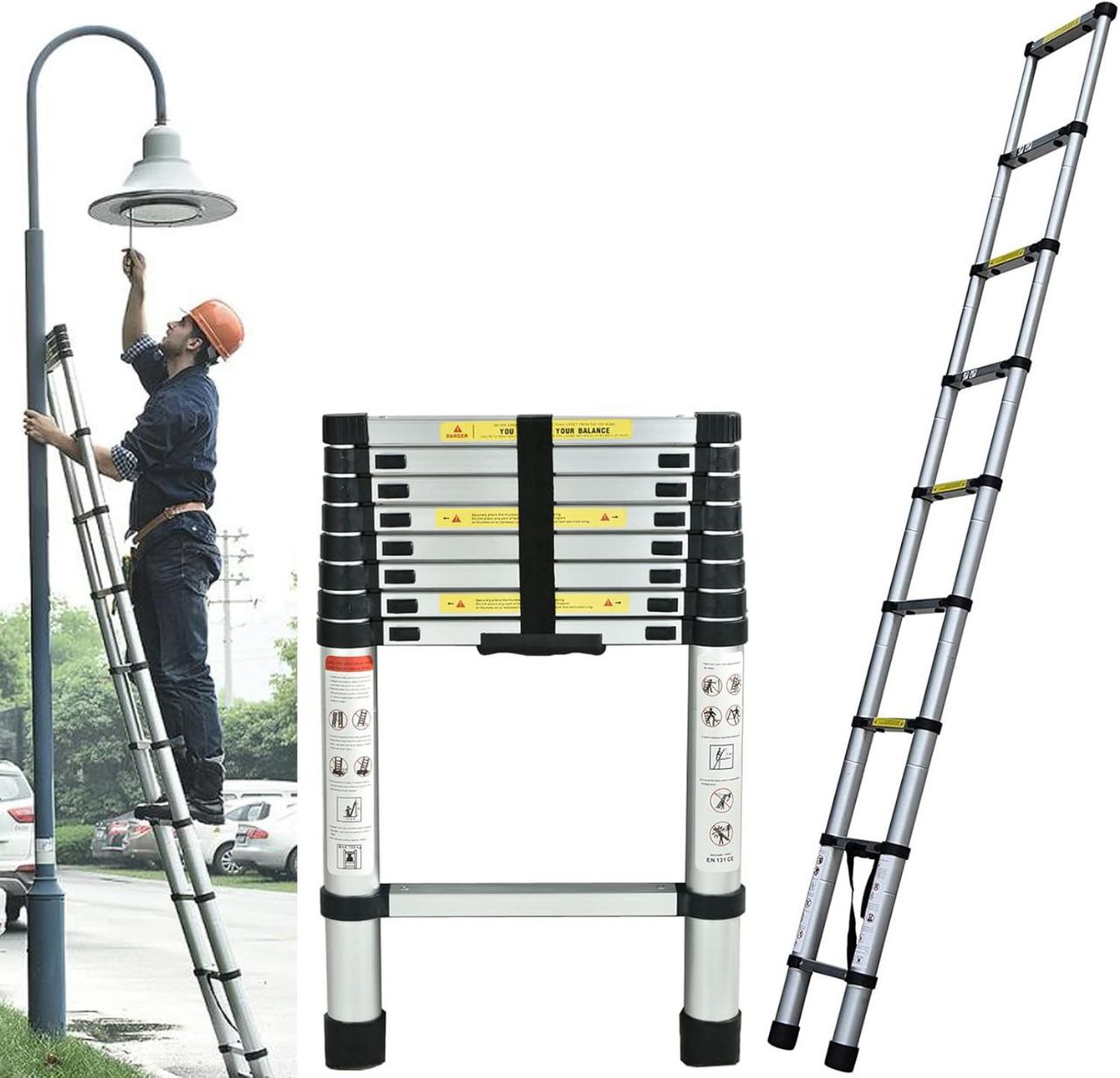 يتميز هذا السلم التلسكوبي بإمكانية الوصول إلى ارتفاع 260 سم، مما يجعله مثالياً للوصول إلى الأماكن العالية في منزلك أو ورشتك بكل سهولة وأمان. سواء كنت بحاجة للوصول إلى الأسقف، الرفوف العليا، النوافذ أو المصابيح، يوفّر لك هذا الارتفاع المرونة الكاملة لإتمام أعمالك دون الحاجة إلى أدوات إضافية أو السلالم التقليدية الثقيلة. بفضل هذا الطول، يمكنك أداء جميع المهام اليومية والمهنية بأمان وراحة كبيرة