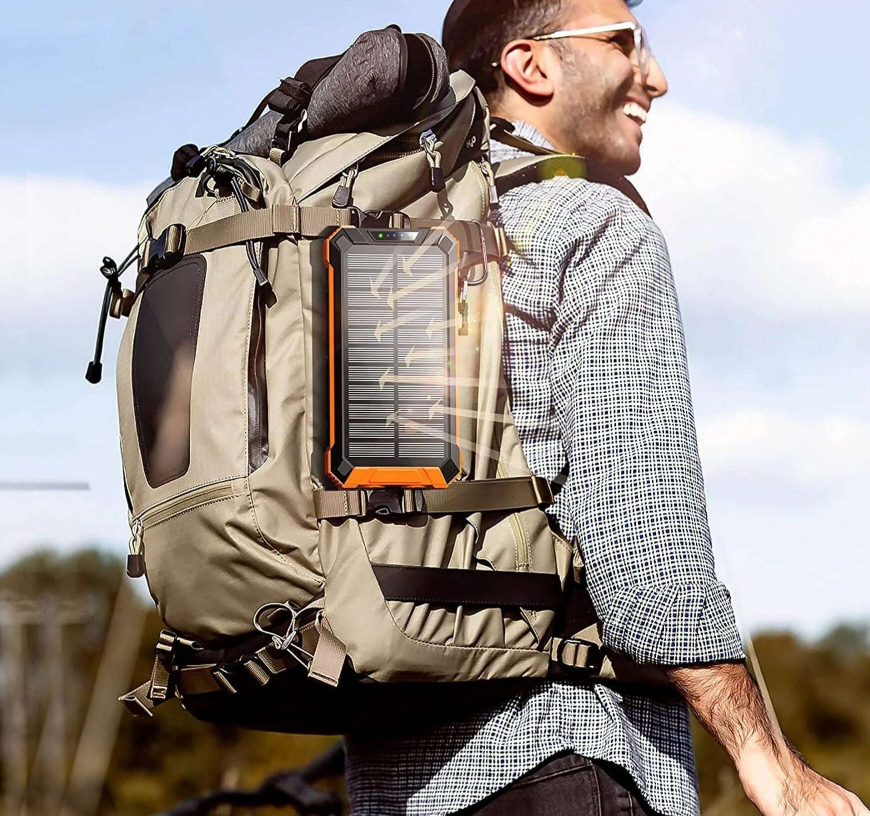 يحتوي هذا الباور بانك على لوح شمسي صغير مدمج في الجهة الخلفية، يتيح له شحن البطارية باستخدام ضوء الشمس الطبيعي. ورغم أن الشحن بالطاقة الشمسية يتم بشكل بطيء ولا يُعتمد عليه كشكل رئيسي للشحن اليومي، إلا أنه يعتبر خيارًا احتياطيًا ذكيًا وفعّالًا في حالات الطوارئ، خصوصًا أثناء التخييم أو السفر في أماكن لا تتوفر فيها الكهرباء. يكفي وضع الجهاز في مكان مشمس ليبدأ تلقائيًا في تجميع الطاقة وتخزينها، مما يمنحك بعض الطمأنينة في المواقف الحرجة التي تحتاج فيها لطاقة إضافية لشحن هاتفك أو تشغيل المصباح. وجود هذا اللوح الشمسي يضيف للجهاز ميزة بيئية ومرونة أكبر في الاستخدام خارج المنزل