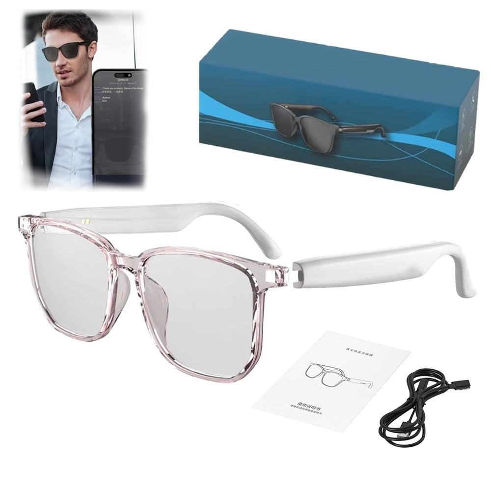 نظارات البلوتوث بتقنية الذكاء الاصطناعي للنساء بتصميم شفاف يمزج بين الموضة والوظيفة. تقلل العدسات المرشحة للضوء الأزرق من إجهاد العين خلال وقت الشاشة الطويل. مثالي للعمل أو البث أو الارتداء اليومي - حافظ على أناقتك مع حماية عينيك