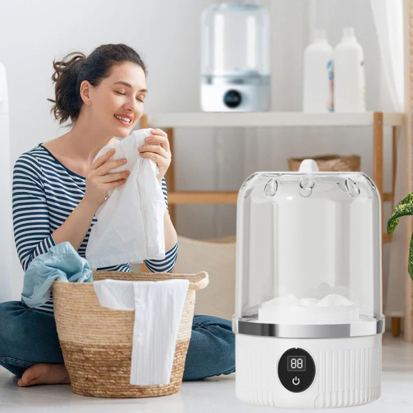 تناسب أي مساحة صغيرة: غرفة النوم، الحمام أو حتى أثناء السفر – لا حاجة لغسالة كبيرة من أجل غسلة صغيرة
